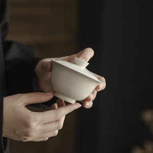 墨己草木灰古泥元宝蓋碗工夫茶器陶磁器薄胎不熱手茶碗家庭用蓋碗
