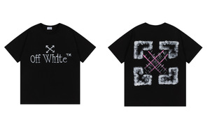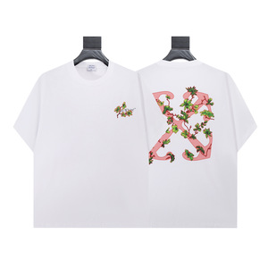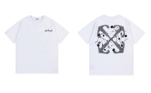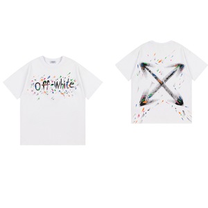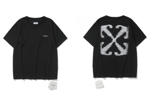 トレンディな漫画落書き油絵矢印半袖男性と女性ルーズカップル OFW 純綿半袖 Tシャツ夏 mk ゼブラ