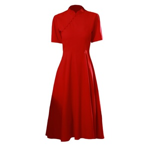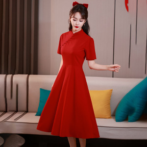 実際に新型の改良チャイナドレスの半袖新婦敬酒服の赤い婚約ドレスのワンピースはいつも着られます。