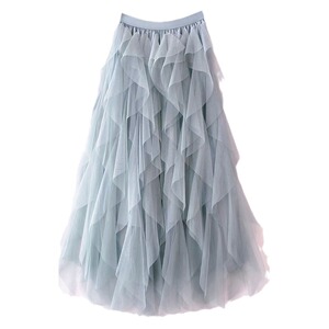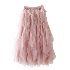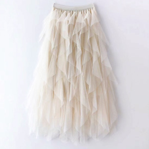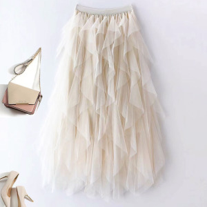 不規則なハイウエストAラインメッシュスカート、春の新作フリルケーキスカート、ガーゼスカート、女性用チュチュスカート