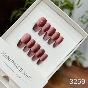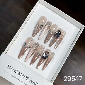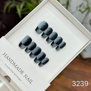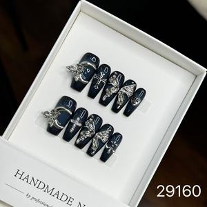 【純手作りのつけ爪29-32】ロングフレンチキャットアイパッチ付け爪、取り外し可能なネイルアートコレクション