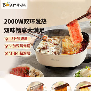 熊DHG-D60F1オシドリ鍋電気鍋多機能鍋一体電気鍋料理しゃぶしゃぶ鍋