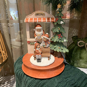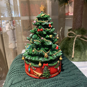 限量款出口欧洲精品店同步圣诞树旋转发条音乐盒圣诞装饰品礼品