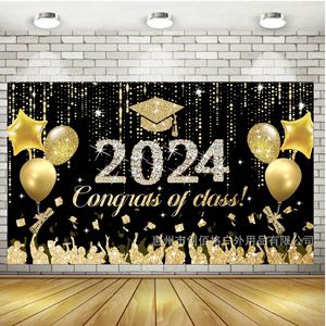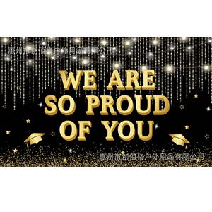国境を越えた新しい卒業テーマのバナー黒金背景室内装飾用品180*110cm