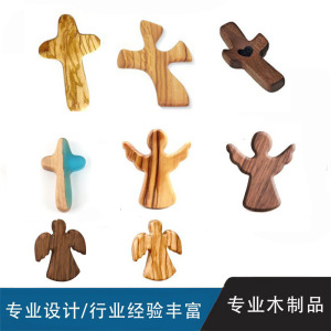 アマゾンオリーブの木の天使の十字の工芸品の置物の樹脂の十字の父の日の愛の胡桃の木
