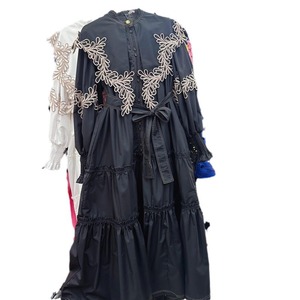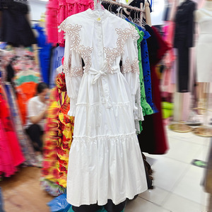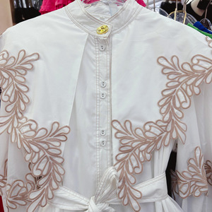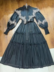 十三行フランスデザイン刺繍マント式腰ベルトシャツ灯籠袖ロングワンピースa3 #3195