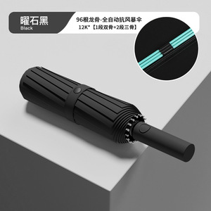 【ダブルリブ自動モデル】40セクショングラスファイバー耐風傘骨 ブラック
