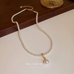 円真珠ペンダントネックレスフランス軽量贅沢シンプルで優雅なセーターチェーンファッション新高級感ネックレス卸売り