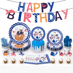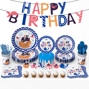 国境を越えた海賊船のテーマパーティー装飾配置用品誕生日使い捨て紙皿紙コップ装飾セット卸売り