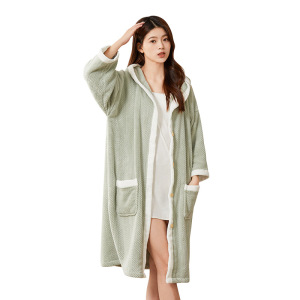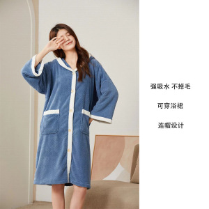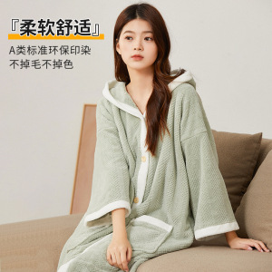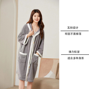 サンゴの毛のバスローブのカジュアルな家の服のパイナップルの格の通気性の浴衣の快適な吸水のバスローブの女性は毛を落とさないで卸売りします。
