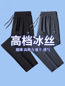 夏のアイスシルクパンツメンズ速乾カジュアルパンツ薄いストレートレッグレギンスパンツ大きいサイズルーズスポーツパンツ男性用