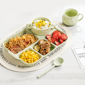 格別減脂ファストフード皿家庭用高颜値児童分食皿陶磁器釉薬下彩朝食皿五格卸売り