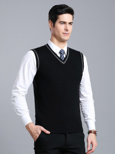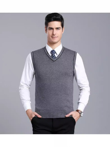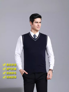 純粋なウールのシャツの純粋な毛の男性のvネックの頭の袖なしの肩の中年のビジネスのウールの底のニットの肩のベスト