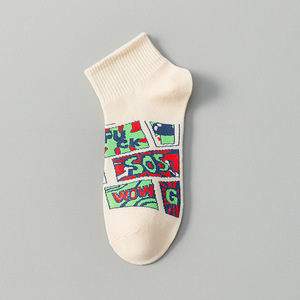 靴下の男性の青少年のソックスの夏のスポーツの中学生の学生の漫画の純綿の防臭のバスケットボールの短いタイプのファッションの靴下の男性
