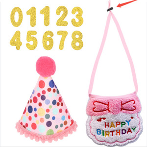 越境セットペット帽子誕生日帽子誕生日デジタル新型猫飾りよだれかけ