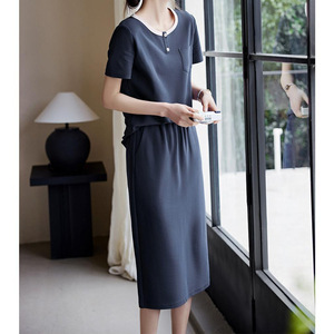 ファッション Tシャツとスカートセット女性 2025 夏の新カジュアルニットデイリーツーピースセット女性