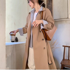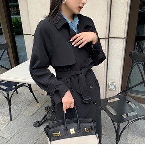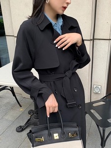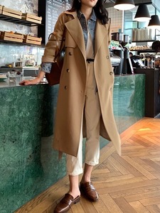 気質のある小柄な女性向け韓国風コート、春秋用、ドレープ感のあるカジュアルジャケット、トレンドのロングコート、2025年新作