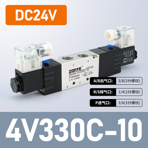 気動電磁弁4v 210年少二位五通dc 24v/ac 220v方向転換電子弁310/410銀色