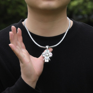 ヨーロッパとアメリカのヒップホップ新製品ニッチデザインロバフラワーペンダント銅象嵌 5A ジルコンパーソナライズされたトレンディなブランドネックレスドロップシッピング