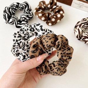 韓国のヒョウの紋様の大腸の髪の輪のフランス式の復古の馬尾の紐は簡単で高弾力の団子の髪の毛の紐は頭の皮の筋を刺します。