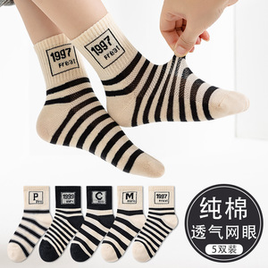 子供の靴下の精練綿の夏の薄いタイプのメッシュの船の靴下の中で大きい子供の男の子の運動の風の骨がないソックスの夏