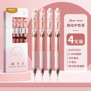 晨光玫瑰茶冻K3562女生按动中性笔水笔碳素黑签字笔高颜值按动笔