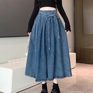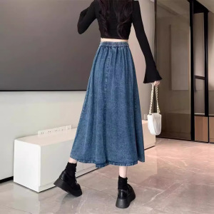 レトロなレギンスのデニムの半身のスカートの女性の春の新型の小さい体の中で長いスカートの腰はやせている気質のa字のスカートを現します。