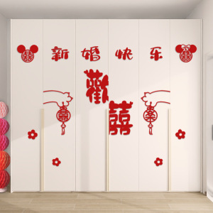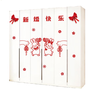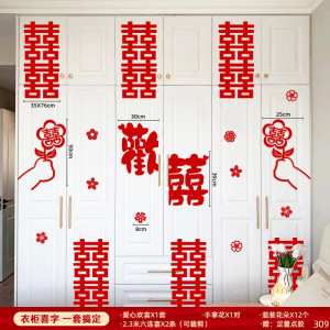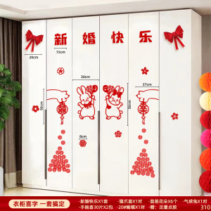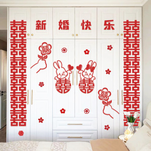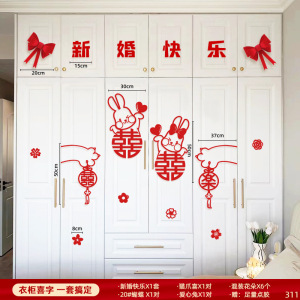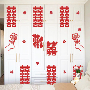 結婚部屋の装飾棚の喜字は結婚専用の寝室のタンスの扉の字の男女の結婚式の配置のスーツを貼ります。