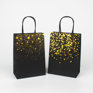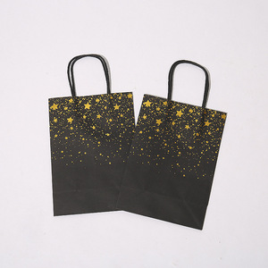 クラフト紙手提げ袋黒色箔押しクラフト紙袋環境保護黒カード星紙袋ギフト袋