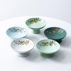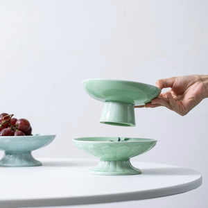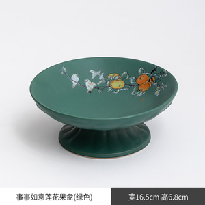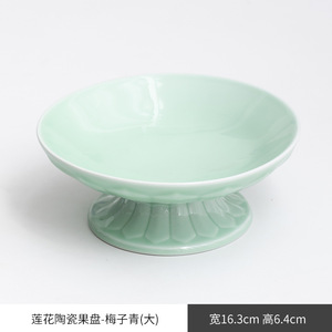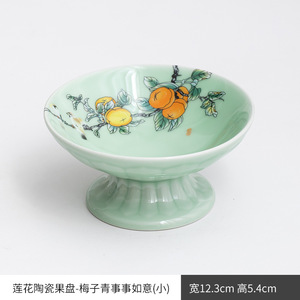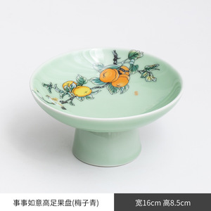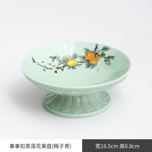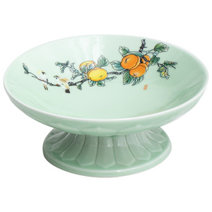 万事如意高足梅子青大サイズの果物皿