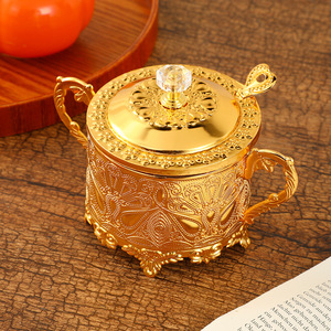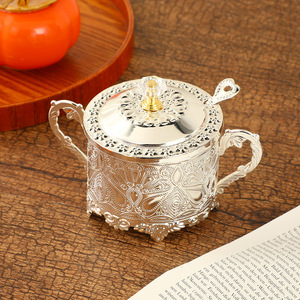 ヨーロッパのレトロなファッションの木目の砂糖の杯の調味料の缶の台所の味の素の砂糖は缶のスプーンの浮き彫りの美しい卸売りを収納します。