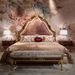 貝殻色貝殻寄木細工 K金箔フレンチダブルベッド(1.8×2m) ローズレッド