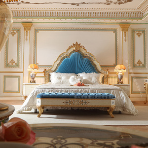 海の貝殻のカラフルなマーブリングフレンチダブルベッドマスターベッドルーム大型ベッド無垢材彫刻ヨーロピアンスタイルファブリックダブルベッドファブリックベッド