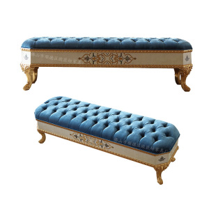 貝殻とカラフルな貝殻の寄木細工 K 金箔フレンチスタイル ベッドサイド スツール (1600*480*520)