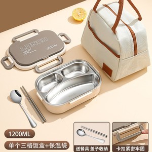 【アップグレード316内胆】ベージュ-三格1200ml + 保温袋 + ステンレス箸スプーン