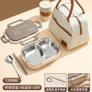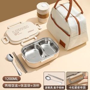 【アップグレード316内胆】ベージュ-2格1200ml + 保温袋 + ステンレス箸スプーン