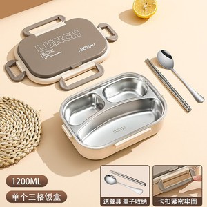 【アップグレード316内胆】ベージュ-三格1200ml + ステンレス箸スプーン