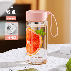 明霞グラス高颜値携帯カバー付き厚いコップ女性のオフィス家庭用コップ卸売りカスタマイズ