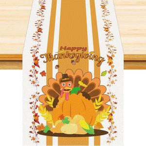 国境を越えた北欧秋の感謝祭アメリカのテーブル旗カボチャのカエデの葉テーブル旗布茶のリビングレストランの装飾テーブル旗