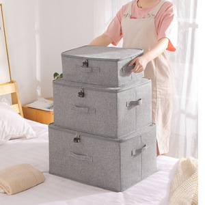 多機能麻布収納ボックス暗号ロック付き衣類収納整理ボックス日本式布芸ありファスナー収納ボックス