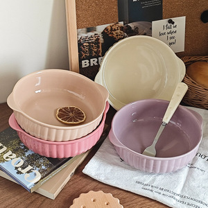 クリームins风セラミック両耳碗エアフライヤー焼き碗电子レンジオーブン専用碗サラダ碗蒸し碗