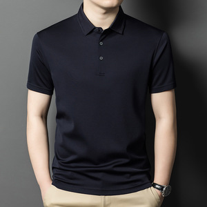 100両面绢糸半袖tシャツ男性夏の薄い襟の純色中年ビジネスカジュアルポロシャツ