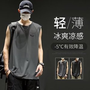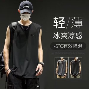 速乾氷糸袖なしベスト男性夏のゆるいファッションブランドの肩の網の目の大きいサイズの運動のフィットネスの純色のtシャツ