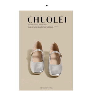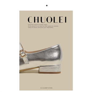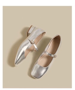 本革レトロフレンチスタイルローヒールレディースシューズ2024秋シルバーパンプスフラットメリージェーンシューズ万能