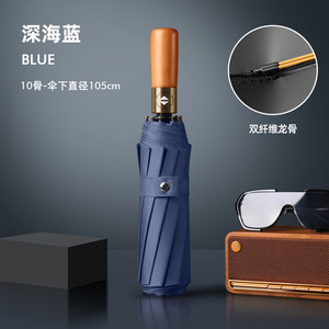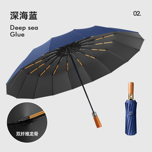 深海藍-木柄16骨双龍骨黒ゴム自動晴雨傘 (32本の竜骨)