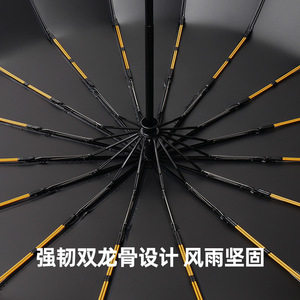 ビジネス黒-木柄16骨双龍骨黒ゴム自動晴れ傘 (32本竜骨)