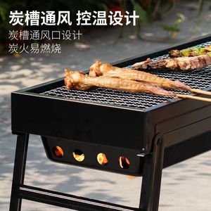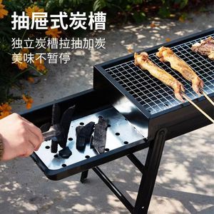 バーベキューグリル大サイズバーベキューグリル屋外チャコール家庭用引き出し式チャコールグリルポータブル折りたたみバーベキューグリル