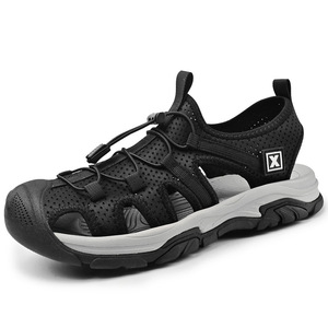 サンダル男2024夏の通気透かし彫り包頭ビーチ靴男屋外運動滑り止めソフト底渉水徒歩靴