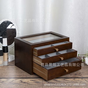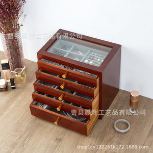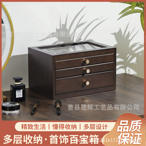 実木アクセサリーケース透明防塵多層レトロジュエリー韓国式ドレッシング収納ケース整理引き出し式家庭用