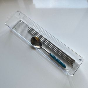 引き出し式透明収納ボックス シンプルな水玉模様の食器箸スプーン整理ボックス デスクトップ化粧品収納ボックス